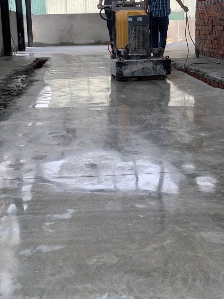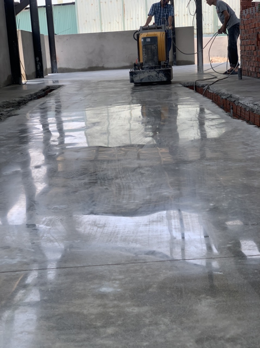• Sử dụng máy mài bê tông kết hợp với đĩa mài thép để xử lý bề mặt sàn. Số lượt mài phụ thuộc theo yêu cầu của khách hàng như màu lộ cát, mài hạ cốt, mài lộ cốt. Thông thường sử dụng cho nền thì chúng tôi sử dụng mài lộ cột liệu.