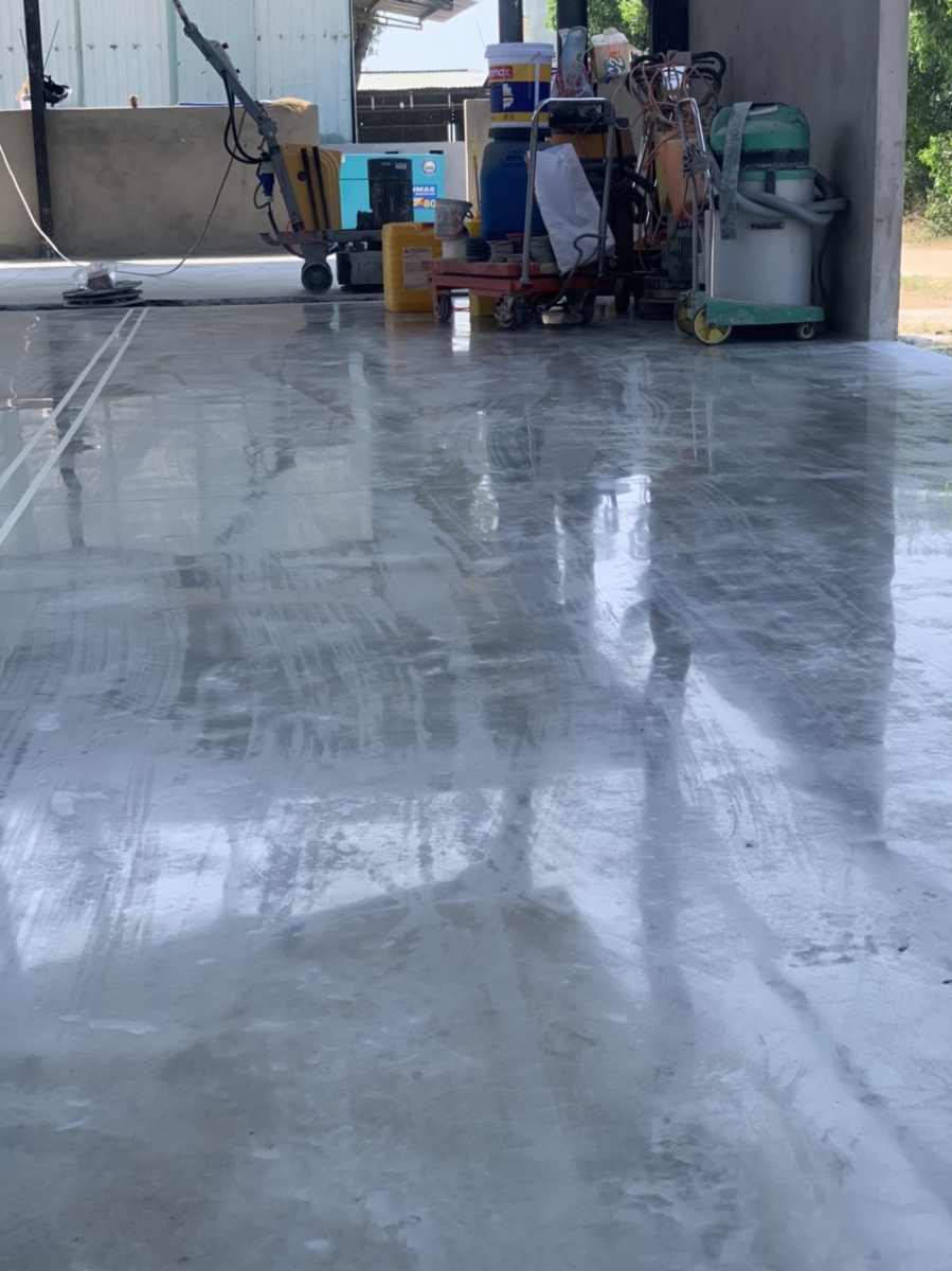 • Cuối cùng, phủ lớp hóa chất siêu bóng lên nền nhà, dùng máy đánh bóng lại là xong.